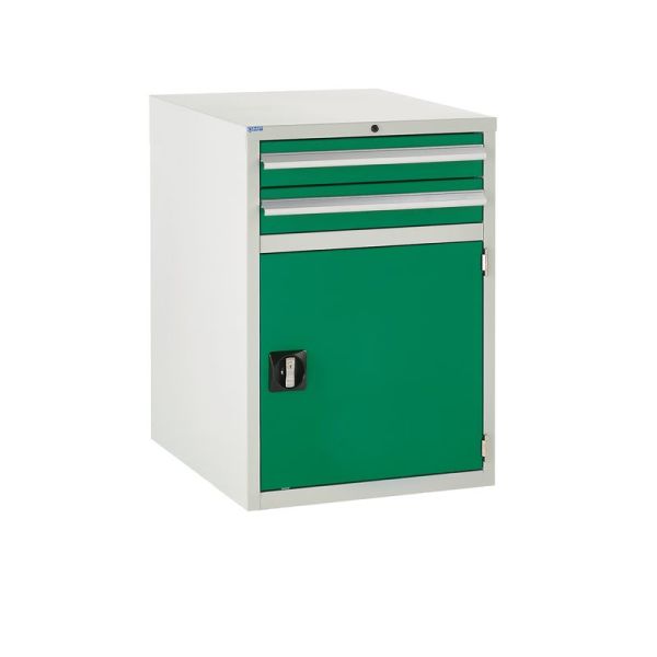 Euroslide 2 Drawer & Cupboard - 2x100mm, 1x500mm - H.825 W.600 D.650 - Green
