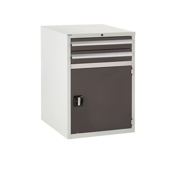 Euroslide 2 Drawer & Cupboard - 2x100mm, 1x500mm - H.825 W.600 D.750 - Dark Grey