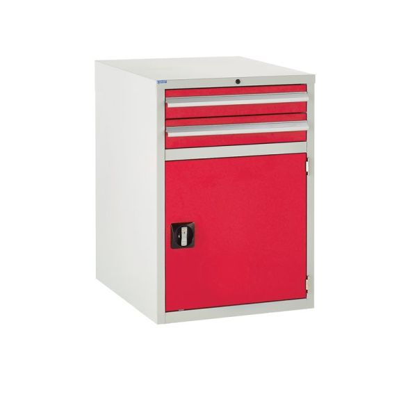 Euroslide 2 Drawer & Cupboard - 2x100mm, 1x500mm - H.825 W.600 D.650 - Red