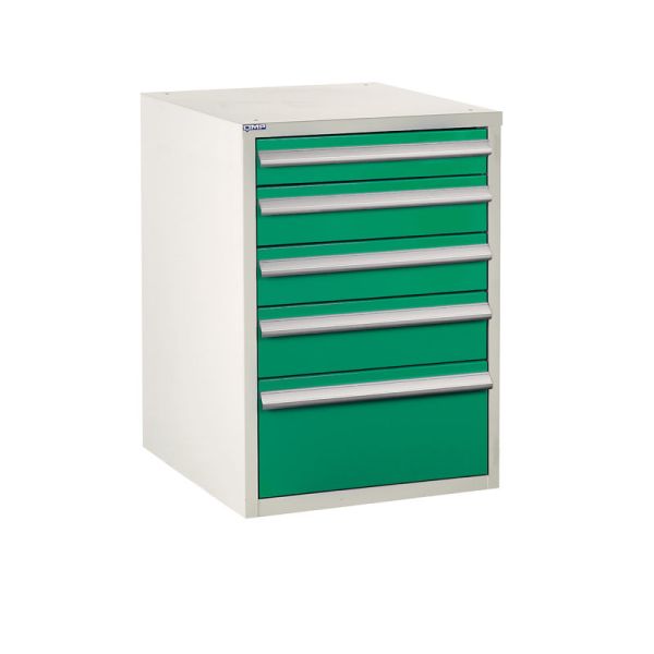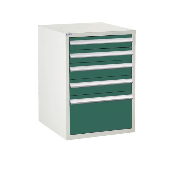 Euroslide 5 Drawer - 1x100mm, 2x125mm, 1x150mm, 1x250mm - H.825 W.600 D.650 - Green