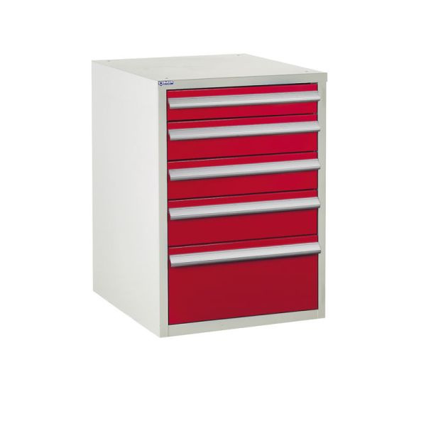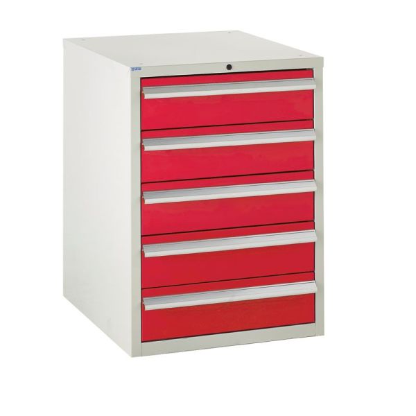 Euroslide 5 Drawer - 1x100mm, 2x125mm, 1x150mm, 1x250mm - H.825 W.600 D.750 - Red
