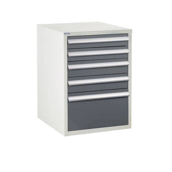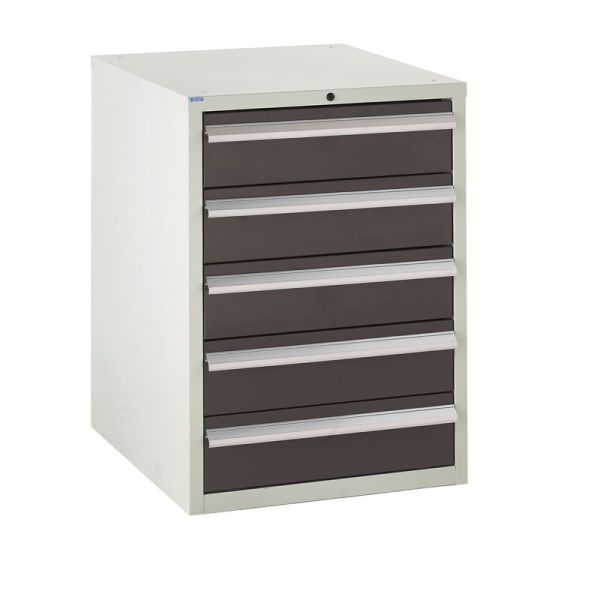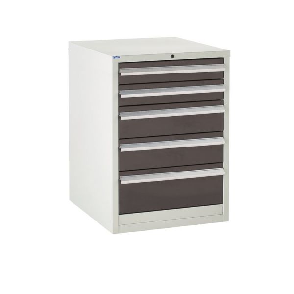 Euroslide 5 Drawer - 1x100mm, 2x125mm, 1x150mm, 1x250mm - H.825 W.600 D.650 - Dark Grey