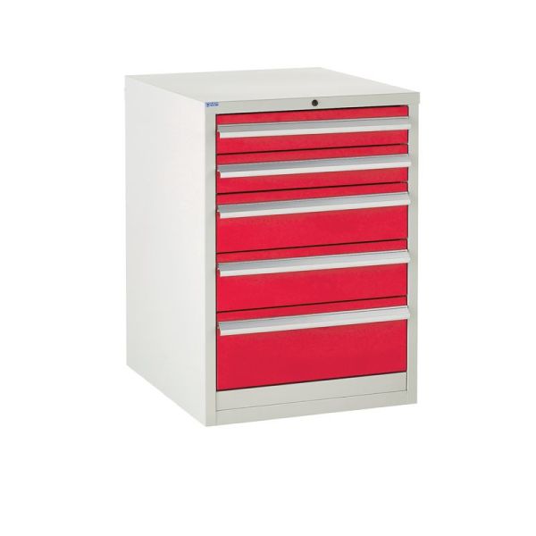 Euroslide 6 Drawer - 4x100mm, 1x150mm, 1x200mm - H.825 W.600 D.750 - Red