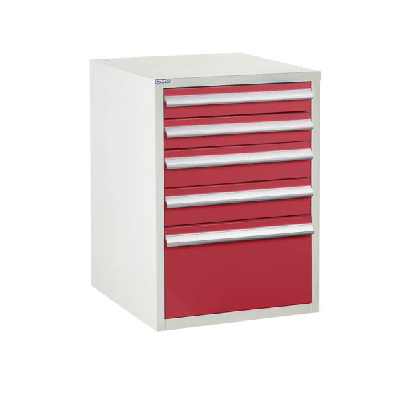 Euroslide 5 Drawer - 1x100mm, 2x125mm, 1x150mm, 1x250mm - H.825 W.600 D.650 - Red