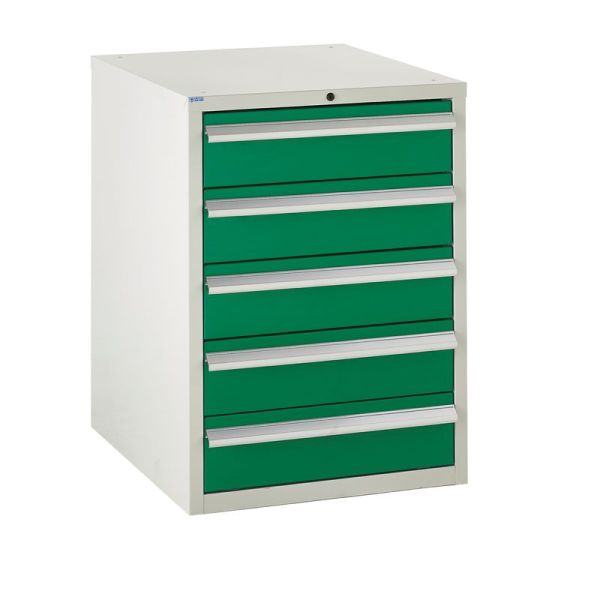 Euroslide 5 Drawer - 1x100mm, 2x125mm, 1x150mm, 1x250mm - H.825 W.600 D.750 - Green