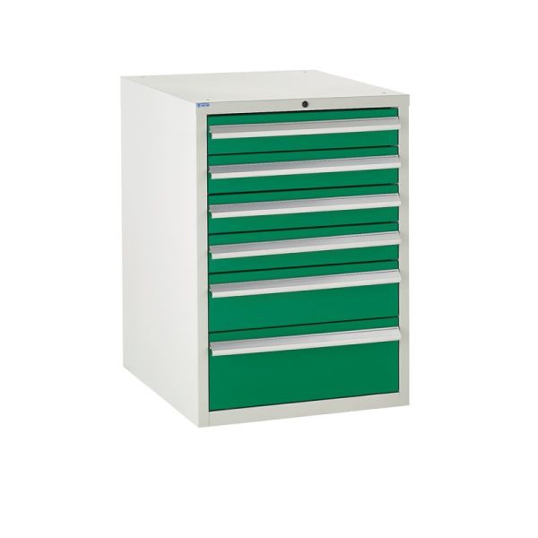 Euroslide 6 Drawer - 4x100mm, 1x150mm, 1x200mm - H.825 W.600 D.750 - Green
