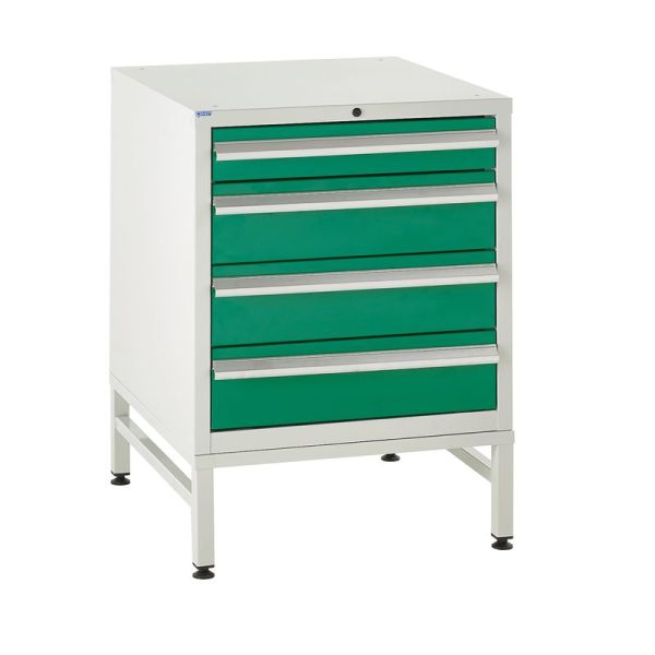 Under Bench Cabinets on Stands 4 Drawer with Stand 2x100mm, 1x150mm, 1x200mm - Green