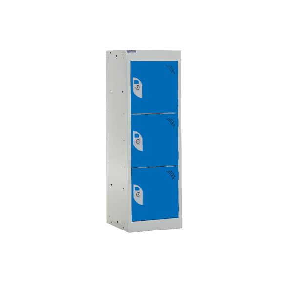 School Locker - 3 Compartment - Blue Doors - H.955 W.300 D.300