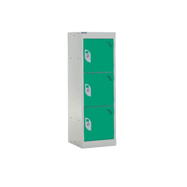 School Locker - 3 Compartment - Green Doors - H.955 W.300 D.300
