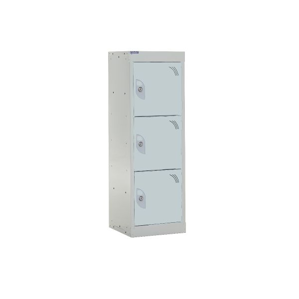 School Locker - 3 Compartment - Light Grey Doors - H.955 W.380 D.380