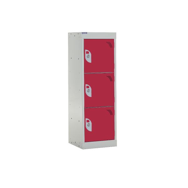 School Locker - 3 Compartment - Red Doors - H.955 W.380 D.380
