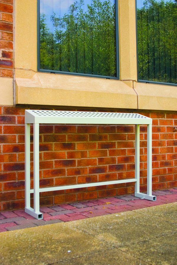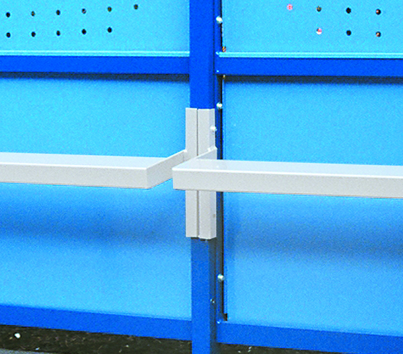 - Fixes to a suitable wall on one side (fixings not included) while supporting legs bolted to the floor (parabolts included).