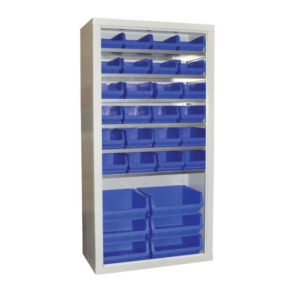 Our Container Storage cupboards offer the user a multitude of storage options. These heavy-duty cupboards are perfect for small parts storage or storage options in the industrial workplace. Louvre panels on the doors and carcass enable the user to conveniently store containers close to hand. These cupboards are available at H.1800 x W.900 x D.460 and are constructed with a weld & rivet framework providing the user with all-around robustness.