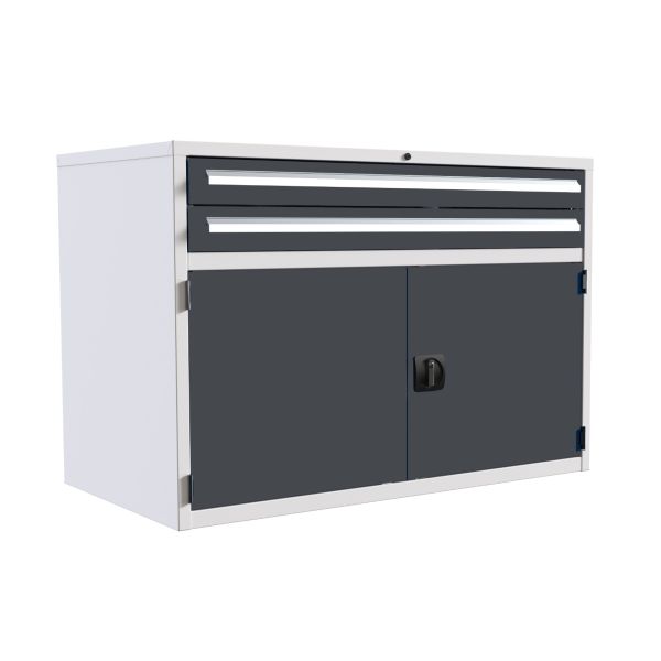 Euroslide 2 Drawer & Cupboard - 2x100mm, 1x500mm - H.825 W.1200 D.650 - Dark Grey