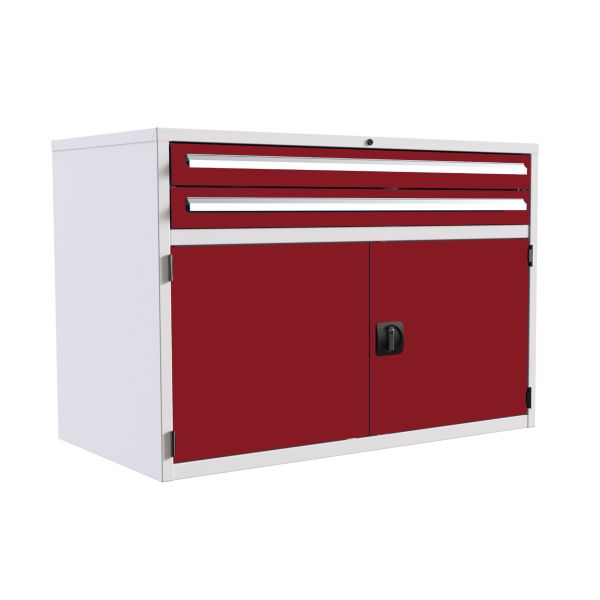 Euroslide 2 Drawer & Cupboard - 2x100mm, 1x500mm - H.825 W.1200 D.650 - Red