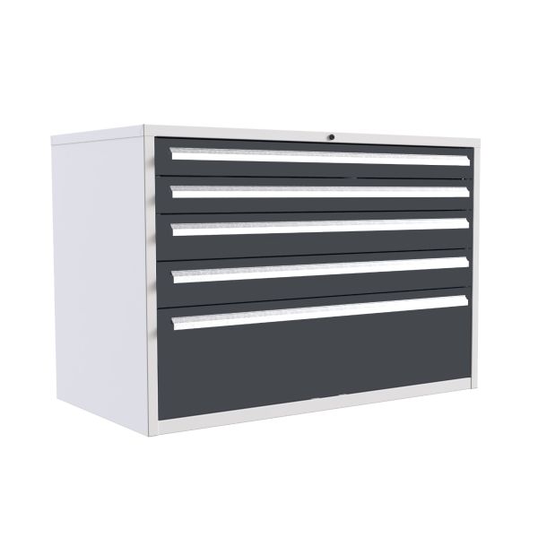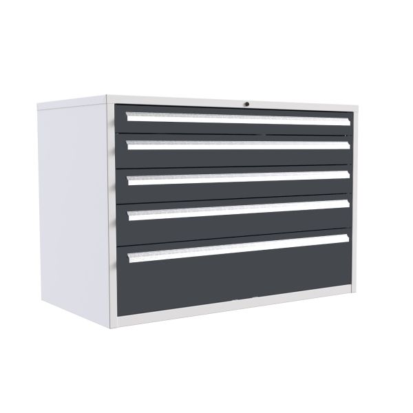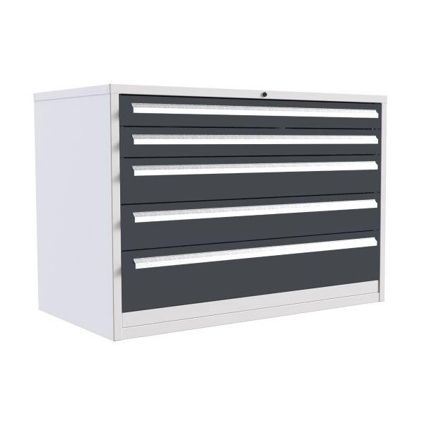 Euroslide 5 Drawer - 1x100mm, 2x125mm, 1x150mm, 1x250mm - H.825 W.1200 D.650 - Dark Grey