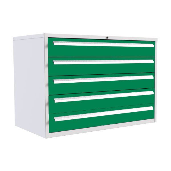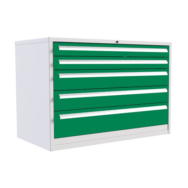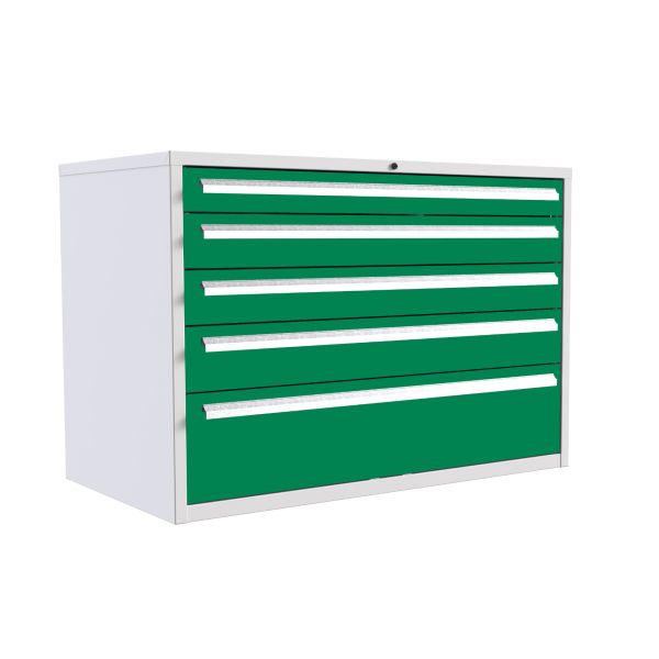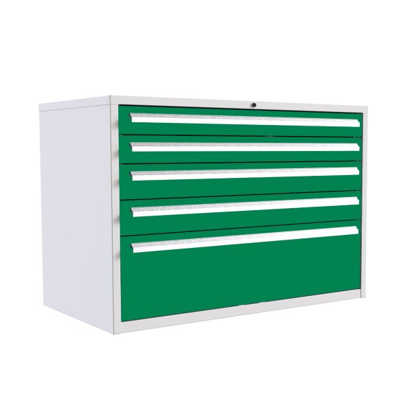 Euroslide 5 Drawer - 2x100mm, 2x125mm, 1x300mm - H.825 W.1200 D.650 - Green