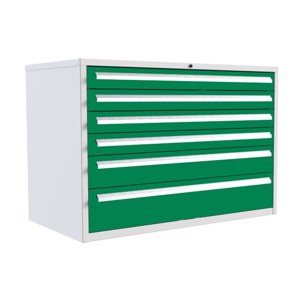 Euroslide 6 Drawer - 4x100mm, 1x150mm, 1x200mm - H.825 W.1200 D.650 - Green