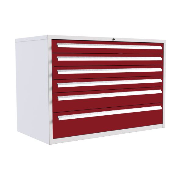 Euroslide 6 Drawer - 4x100mm, 1x150mm, 1x200mm - H.825 W.1200 D.650 - Red