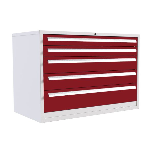 Euroslide 5 Drawer - 2x100mm, 2x125mm, 1x300mm - H.825 W.1200 D.650 - Red