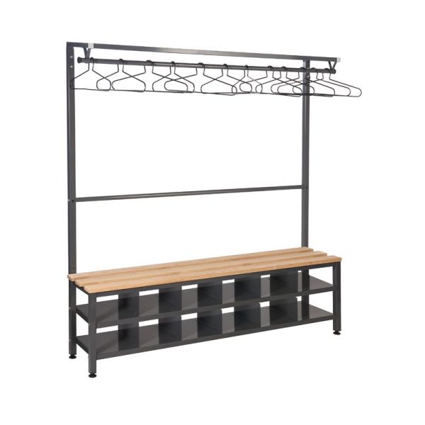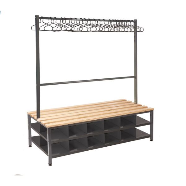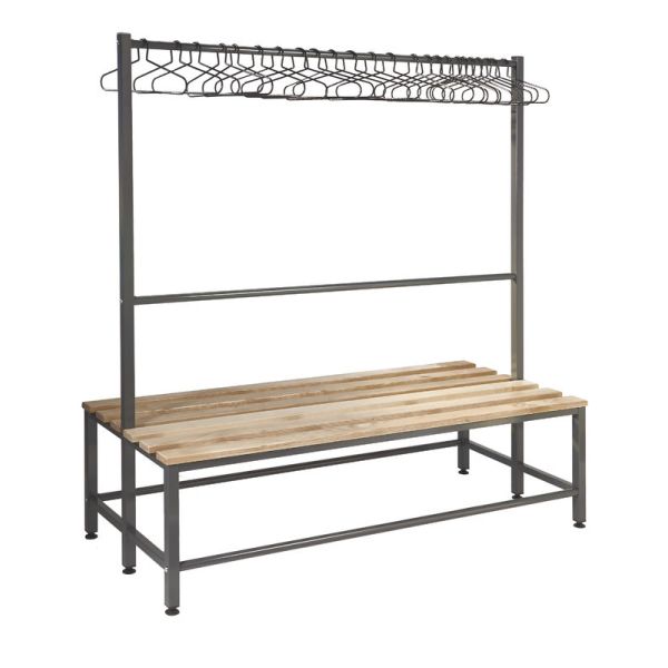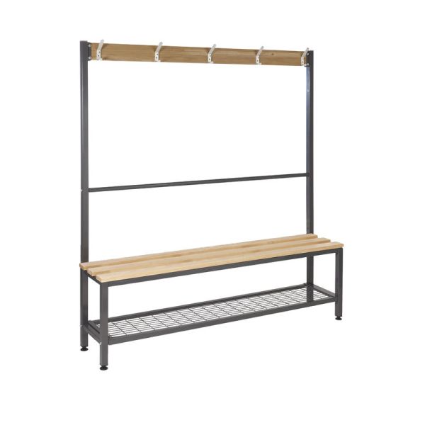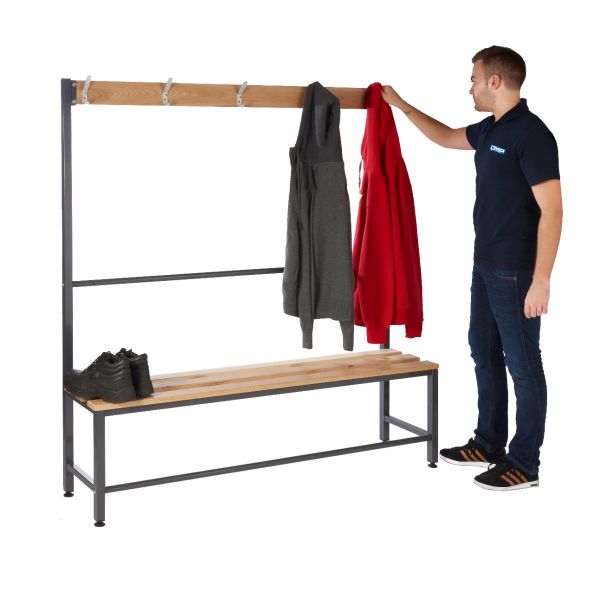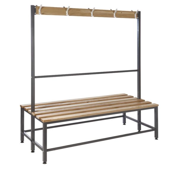 QMP's Island Benches are available as a single or double unit with hard-wearing solid oak slats. This cloakroom furniture is perfect for changing rooms in leisure centres, gyms or staff changing rooms within the workplace. The unit's durable framework is powder coated in dark grey with Germ Guard Technology Anti-Bacterial paint.