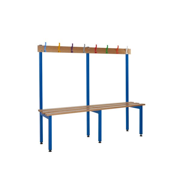School Cloakroom Island Bench - Single Depth - Light Blue Frame - 5 Hooks - L.1200 W.1000 D.300