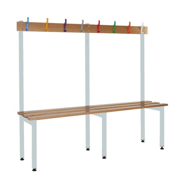School Cloakroom Island Bench - Single Depth - Light Grey Frame - 5 Hooks - L.1200 W.1000 D.300