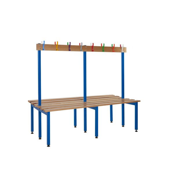 School Cloakroom Island Bench - Double Depth - Light Blue Frame - 10 Hooks - L.1200 W.1000 D.600