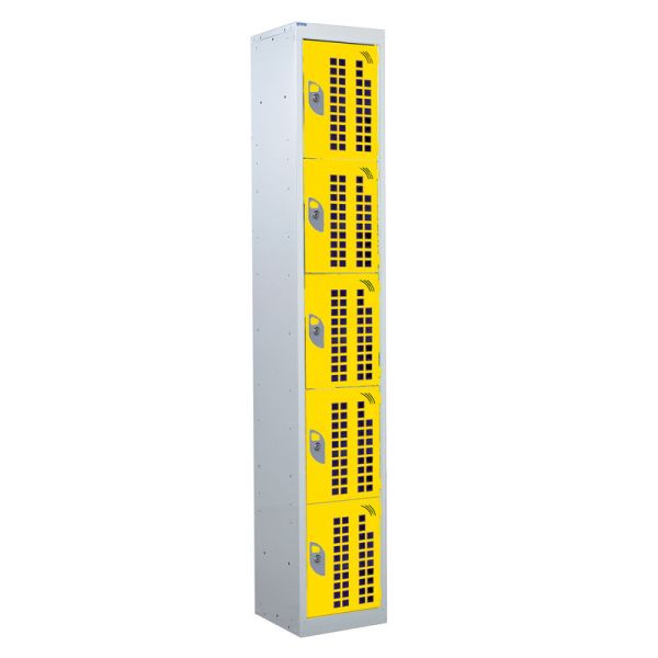 Perforated Door Locker - 5 Compartment - Yellow Doors - H.1800 W.300 D.300
