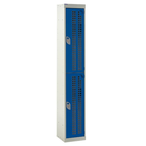 Perforated Door Locker - 2 Compartment - Light Blue Doors - H.1800 W.300 D.300