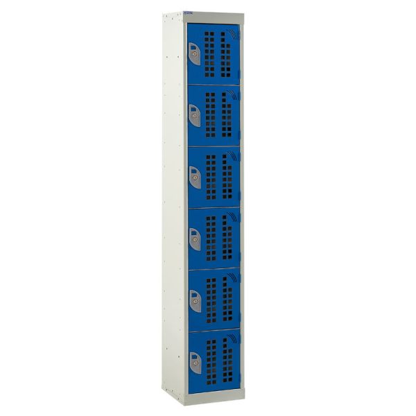 Perforated Door Locker - 6 Compartment - Light Blue Doors - H.1800 W.450 D.450
