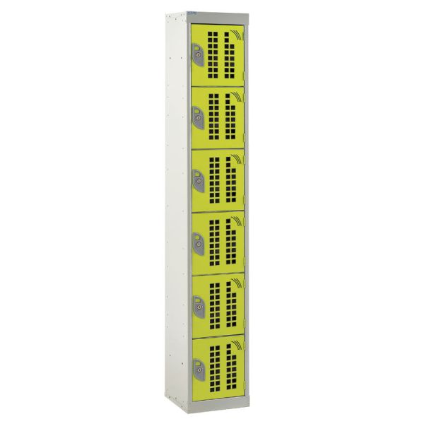 Perforated Door Locker - 6 Compartment - Yellow Doors - H.1800 W.450 D.450