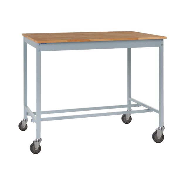 Mobile Square Tube Workbench - H.840 W.1200 D.600mm - Solid Beech Worktop