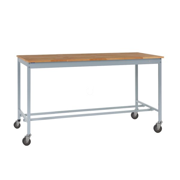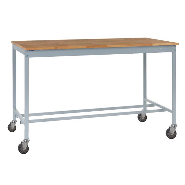 Mobile Square Tube Workbench - H.840 W.1500 D.600mm - Solid Beech Worktop
