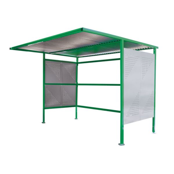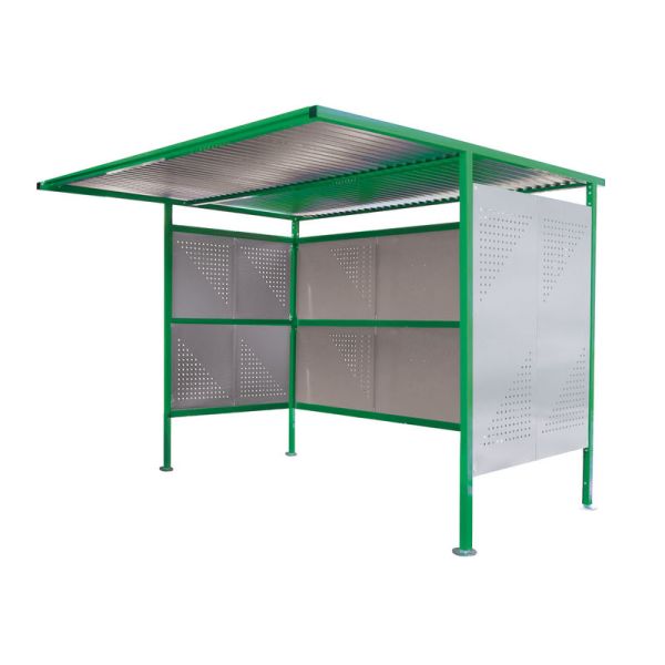 Traditional Cycle Shelter - Initial - Open Back, Perforated Sides - 2180.2500.3060 - Green
