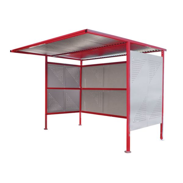 Traditional Cycle Shelter - Initial - Open Back, Perforated Sides - 2180.2500.3060 - Red