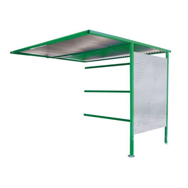 Traditional Cycle Shelter - Extension - Open Back, Perforated Sides - 2180.2500.3060 - Green